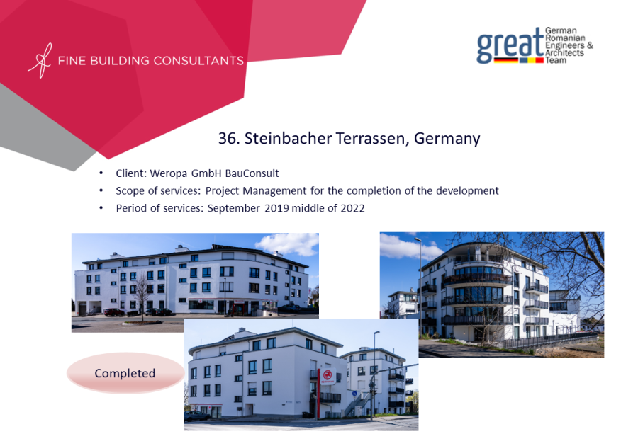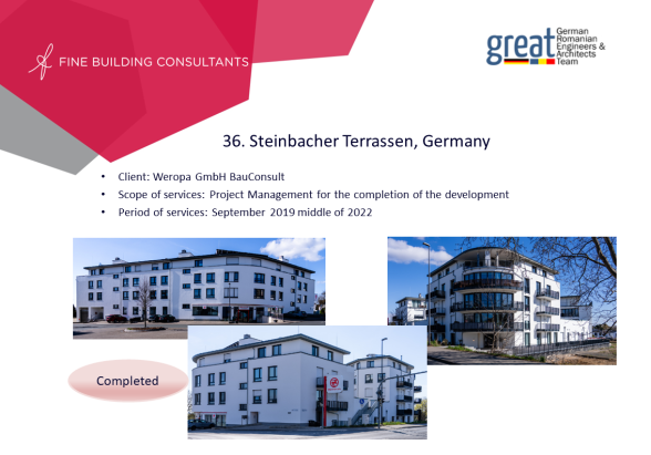 Beside this we expanded our current services in the area of contract management and cost controlling services in cooperation with Weropa GmbH and a law office beyond the boundaries to both countries, Germany and Romania.